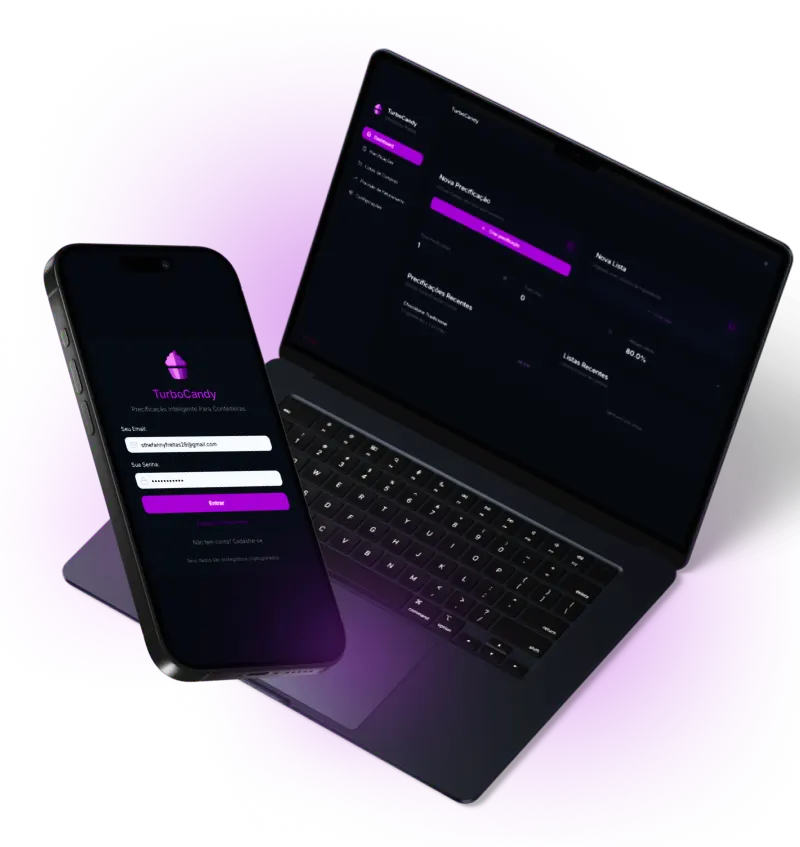 Aplicativo de Precificação Inteligente para confeiteiras que querem profissionalizar seu negócio. Confira tudo que o TurboCandy faz: